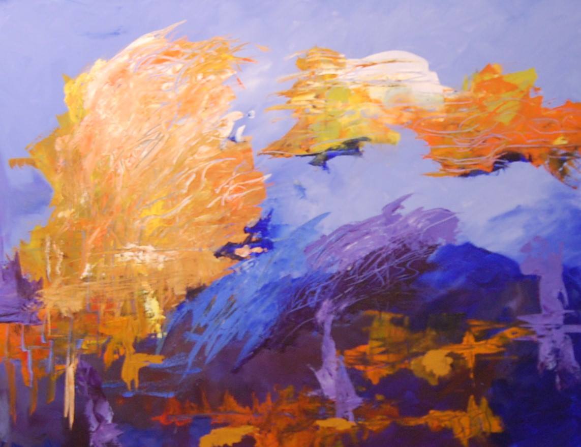My process reflects my state of mind. I am concerned with the physical, the emotional, the mental and the spiritual. My painting is about the struggle between balancing control with spontaneity. My paintings are nonobjective with no preconceived expectation of how they will turn out. Each work takes on a life of its own throughout the process. I will quickly cover the canvas in one work session and then continue to revisit it for several days, adding, subtracting, reframing it until in my mind’s eye any confusion and clutter is removed, and I have a clear view.